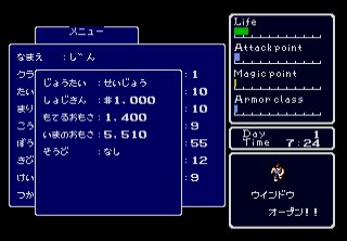 持ち物の「お金」を使ってからウインドウを閉じて下さい。