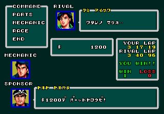 展開としては、レースでライバルに勝って、スポンサーからもらったご祝儀でバイクをパワーアップして、さらにレースって所ね。 |