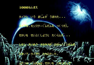 1000年前の魔女ライアと英雄オラキオの戦いで、高度に進化した文明が失われ、中世の時代程度の文化になってしまった世界がファンタシースター3の舞台だ。 |