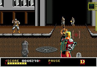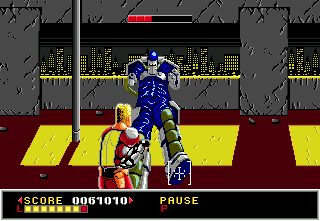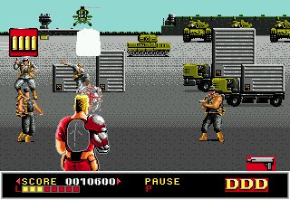 銃を撃ってない時は、デュークを左右に動かせるぞ。画面は横方向に強制スクロールするんで、避けて撃って大忙しだ。 |