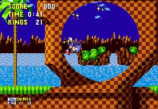 あと、メガドラでは不可能って言われてた、回転・縮小の画面効果もソニックが初めてやったのよね。 |