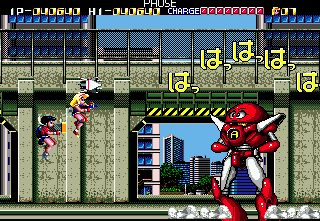 主人公の名前もそうだけど、1面の背景まで、セガの地元の大田区の雰囲気を再現してるのよ。 |