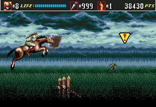2面は、馬に乗っての強制スクロールステージだぞ。