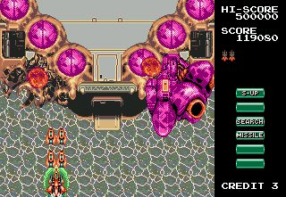 |  | メガドラでは珍しい縦スクロールシューティングだな。