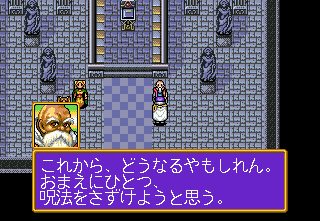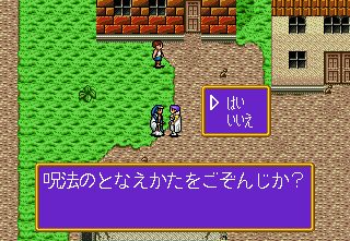 隣町に行く前に、この町の呪法師に、呪法の使い方を教えてもらっておくといいわよ。 |