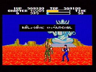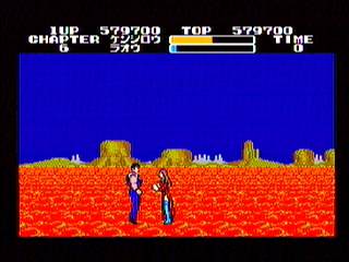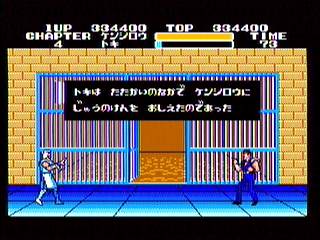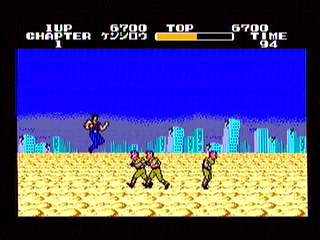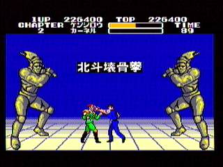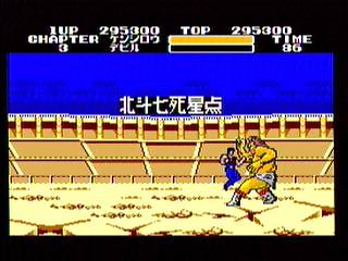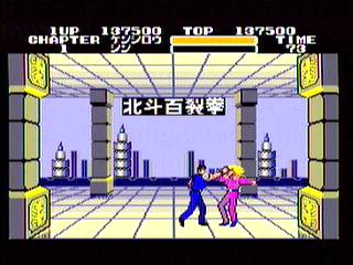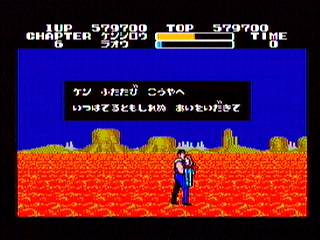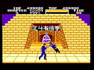 これは、ちゃんと再現してるわね〜 エンディングでケンシロウが画面から消えてから、方向キーの上を連打しとくと、ボスオンパレードのステージ7が始まるのよ〜 |
