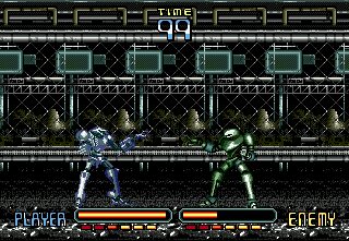 その重いロボを操ってアクションステージを抜けると、敵ロボットとのサシでの対決です。 |