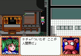 お約束の、相棒となるマスコットキャラのケチャと合流したら、さっそく人間界に転送だ!! |